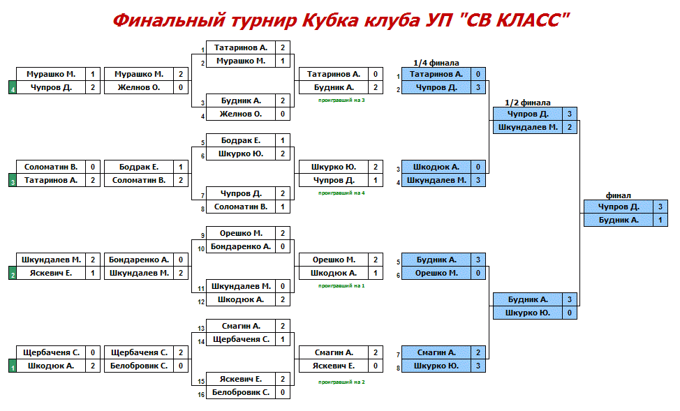 Участник 1/8 Орешко М.В. Участник 1/4 Татаринов А.В. |